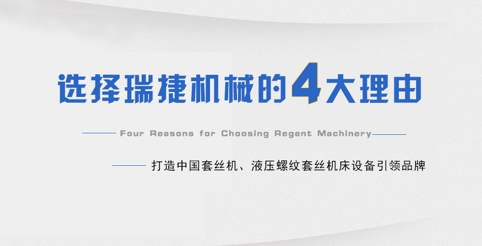 邢台市瑞捷机械制造有限公司专业生产圆钢套丝机,钢管套丝机两大系列,其特点主要展现为机头的优化改进,大幅度提高了加工螺纹丝头的精确度和工作效率,有效解决了本行业在加工丝扣上端部易扭转变形(丝扣加易扩口)、配件损耗高、加工效率低的技术难题。